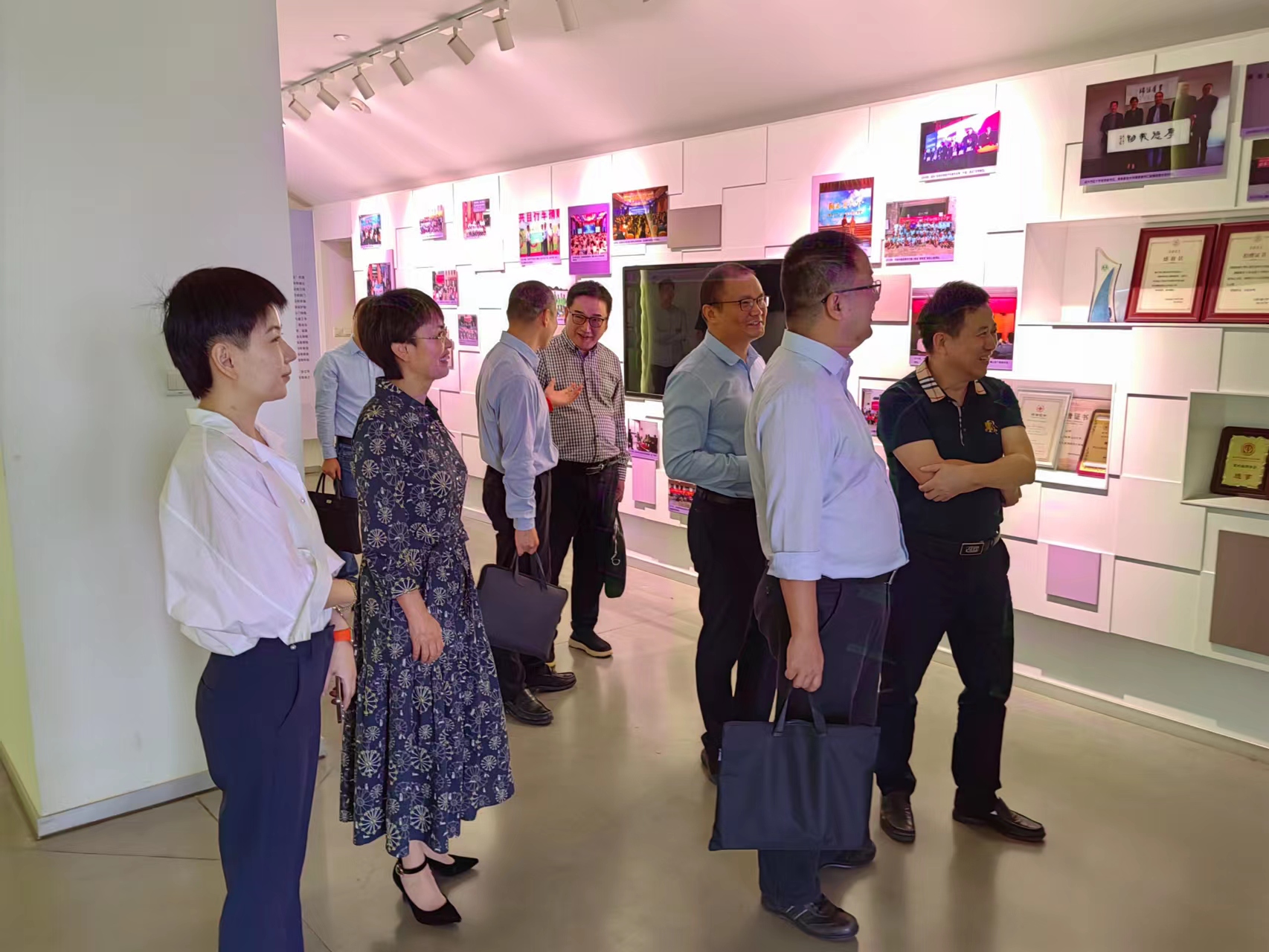 调研组一行从城市大厅开始,边走边看边听,在作品展板前,一批高质量设计作品,特别是亚运场馆羊山攀岩中心、浙东运河博物馆等“网红”建筑引起了他们的浓厚兴趣;在公益长廊,对华汇在承担社会责任、持续公益回馈的善行义举留下深刻印象;在挑空阳台眺望梅山江景色,观赏屋顶农场作物长势,仰望大楼的垂直绿化、光导照明、光伏发电等绿色元素,处处感受到了绿色舒适的生态办公环境。