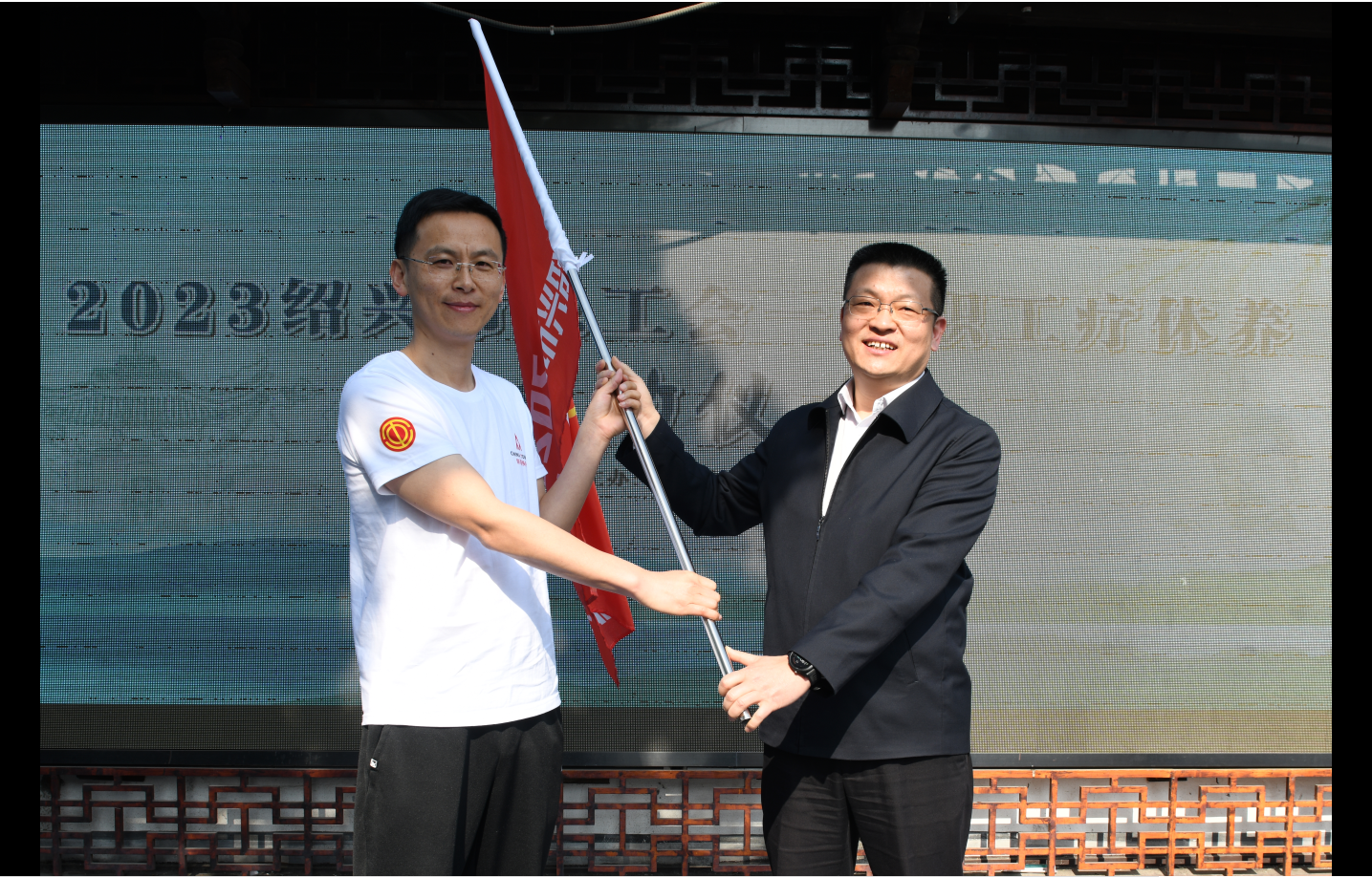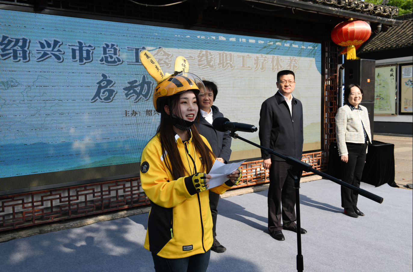 4月27日上午,2023年绍兴市总工会一线职工疗休养活动启动仪式在鲁迅故里东入口广场举办。
