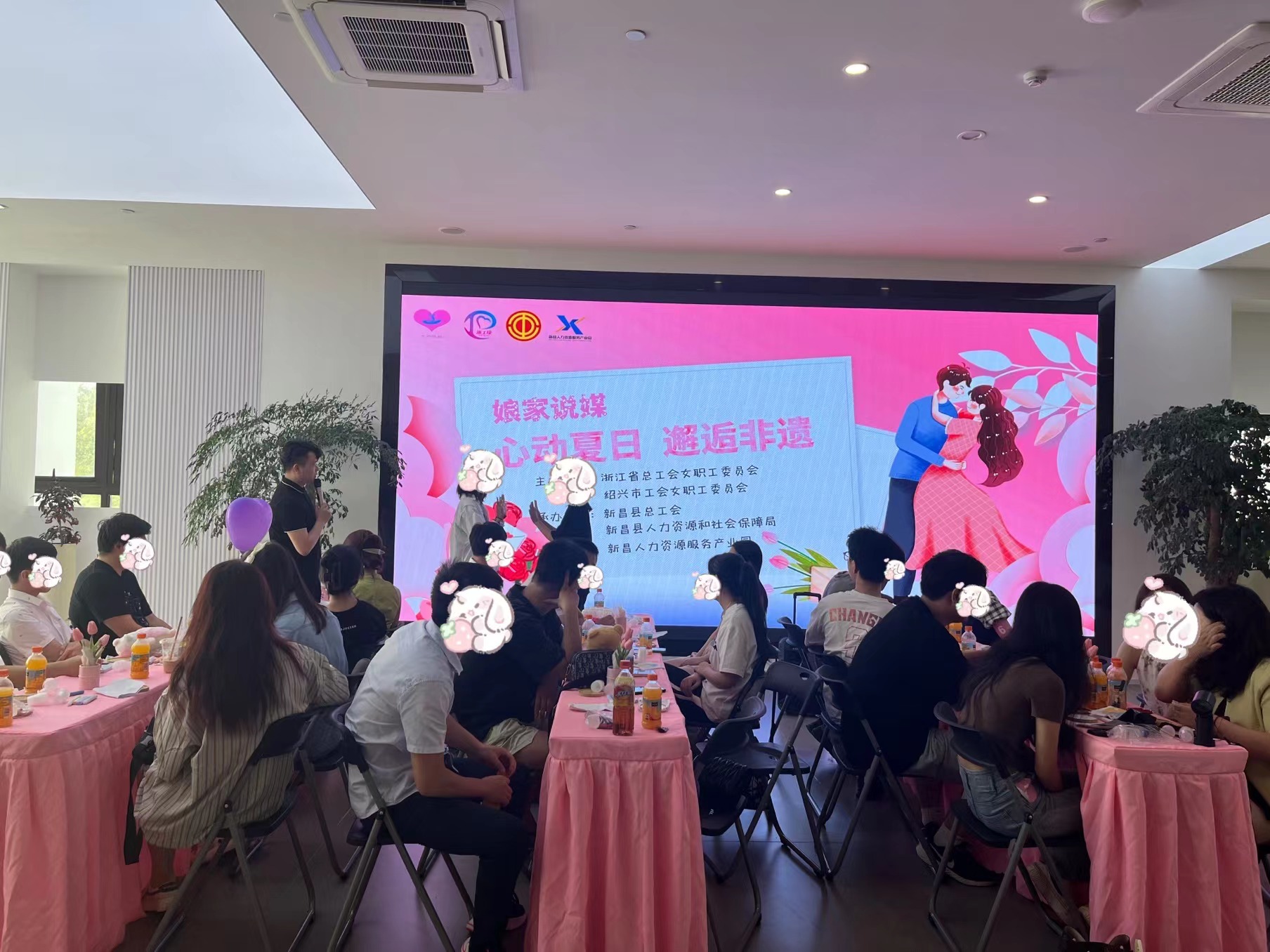 7月9日,娘家说媒——“心动夏日,邂逅非遗”青年交友活动在新昌人力资源服务产业园二楼举行,来自全县企业的30余名单身青年参加了此次活动。现场共有5对新人成功牵手。